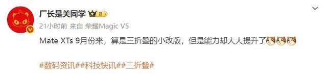 根据目前曝光的信息来看,在9月份将发布的Mate XTs应该算是一款小迭代的三折叠产品,整体外观和规格应该不会有太大变化,但是芯片和影像系统会进行升级。不过据数码博主“厂长是关同学”称,该机的处理器肯定不是传闻中的麒麟9030处理器。此外,该机还在测试低轨卫星互联网系统,可以实现没信号直接上网。