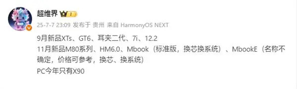 虽然今年华为上半年的Pura系列旗舰的发布时间有些延后,但是其全球首款量产三折叠手机却再次为行业带来了一股新风。近日,网间再次曝光了华为下半年将发布新品的时间表,从中可以看出既包括三折叠手机的小改版,又包括年度旗舰Mate 80系列,此外,还有鸿蒙6.0系统、笔记本电脑、耳机、PC等新品。而日前,有数码博主还曝光了华为Mate 80系列的部分配置信息,并且据称,其将搭载的处理器并非麒麟9030。